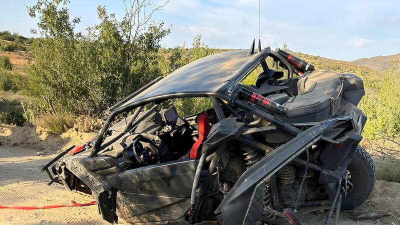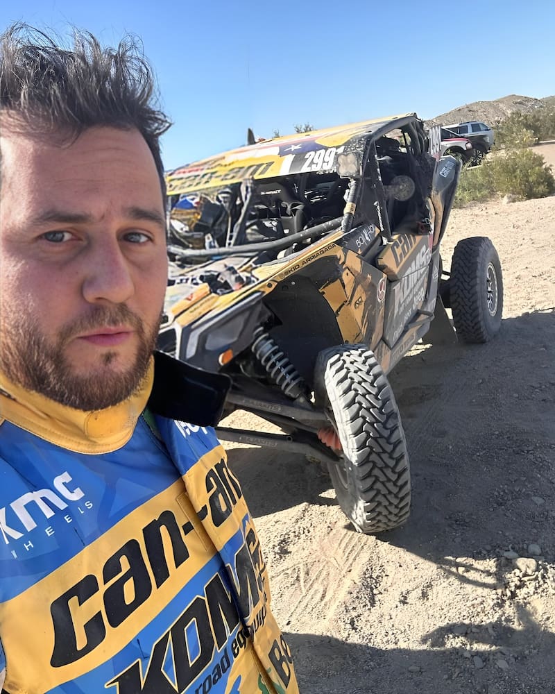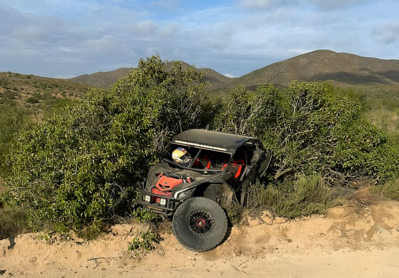 “Al día siguiente, cuando estaba afinando detalles con el UTV de carrera (un Can-Am Maverick X3 Turbo), no me entraba el alma al cuerpo, andaba con bastante miedo, estaba todavía en shock del día anterior y me costaba hasta subirme. Hice 70 millas de preparación y al día siguiente, en la carrera, salí, empecé a andar a mi ritmo con el pelotón, hasta que en la milla 215 tuve un descuido y en un salto caí en una roca y perforé la transmisión, lo que me hizo abandonar la carrera”.