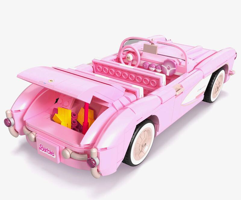 El auto que toma la base del vehículo que debutó en 1956 pertenece a una colección de la compañía MEGA. Es un convertible -obviamente de color rosa- construido en pequeños bloques, pero no es un LEGO. Cabe señalar quer Mattel, dueña de los derechos de Barbie, se acercó a MEGA por su experiencia con juguetes similares del Aston Martin Vulcan y el Tesla Cybertruck.