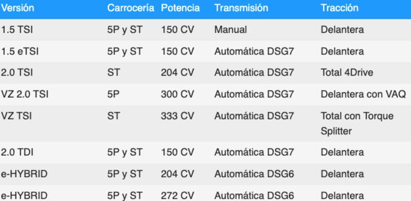 En cuanto a la carrocería familiar, estrena un 2.0 TSI de 204 Hp con tracción total y cambio DSG de siete velocidades, con la versión VZ potenciada hasta los 333 Hp. Obviamente, la opción microhíbrida de 48 voltios, con 150 Hp, sigue estando disponible en ambos formatos.