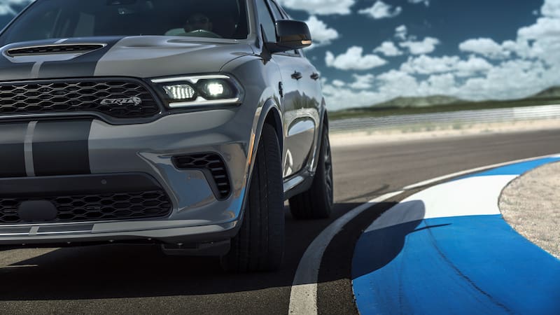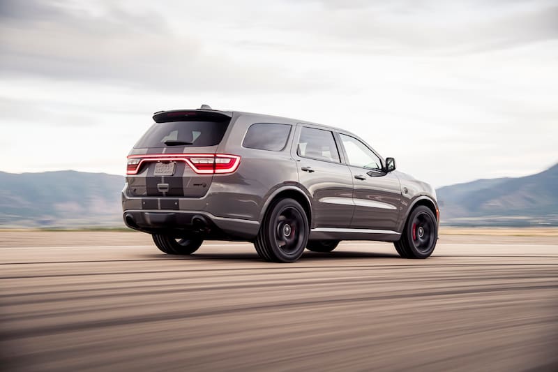 La suspensión también fue revisada, de forma que el Durango SRT 2021 adopta los amortiguadores de de rebote y soportes superiores traseros, lo que ayuda a ofrecer tiempos de vuelta más rápidos y un mejor manejo en comparación con el modelo anterior. Por su parte, los frenos Brembo con discos de 381 mm adelante y de 350 mm, además de pinzas de seis pistones, logran calmar los impulsos del Durango SRT Hellcat a tal punto que pueden detenerlo en 34,7 metros cuando está lanzado a 100 km/h. Dodge dice que el cigüeñal ha sido sometido a pruebas de sobre 13 mil rpm.