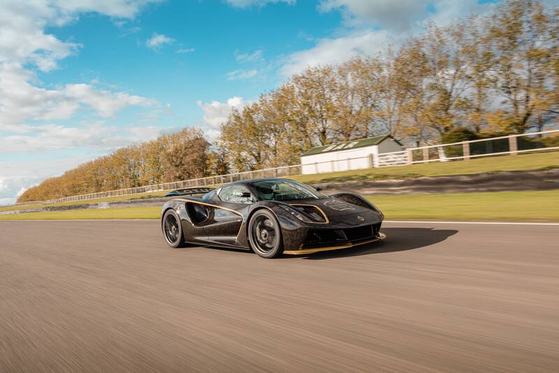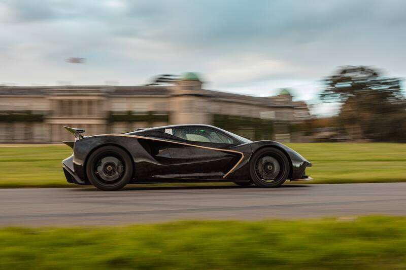 El primer eléctrico británico del segmento de los sport cars se viste de negro y dorado, como los recordados coches John Player Special del Team Lotus.