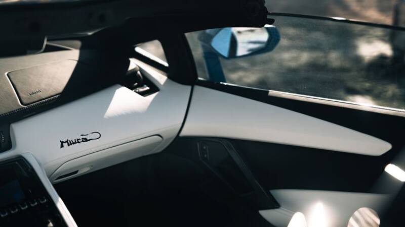 Por dentro, este Aventador Ultimae también replica el acabado del Miura Roadster, con una tapicería en cuero Bianco Leda con Nero Aldebaran a modo de contraste. El tablero también tiene zonas en Nero Ade Alcantara con costuras Bianco y en la zona de la guantera luce otra exclusiva insignia de Miura bordada, similar a la que lleva el modelo original.
