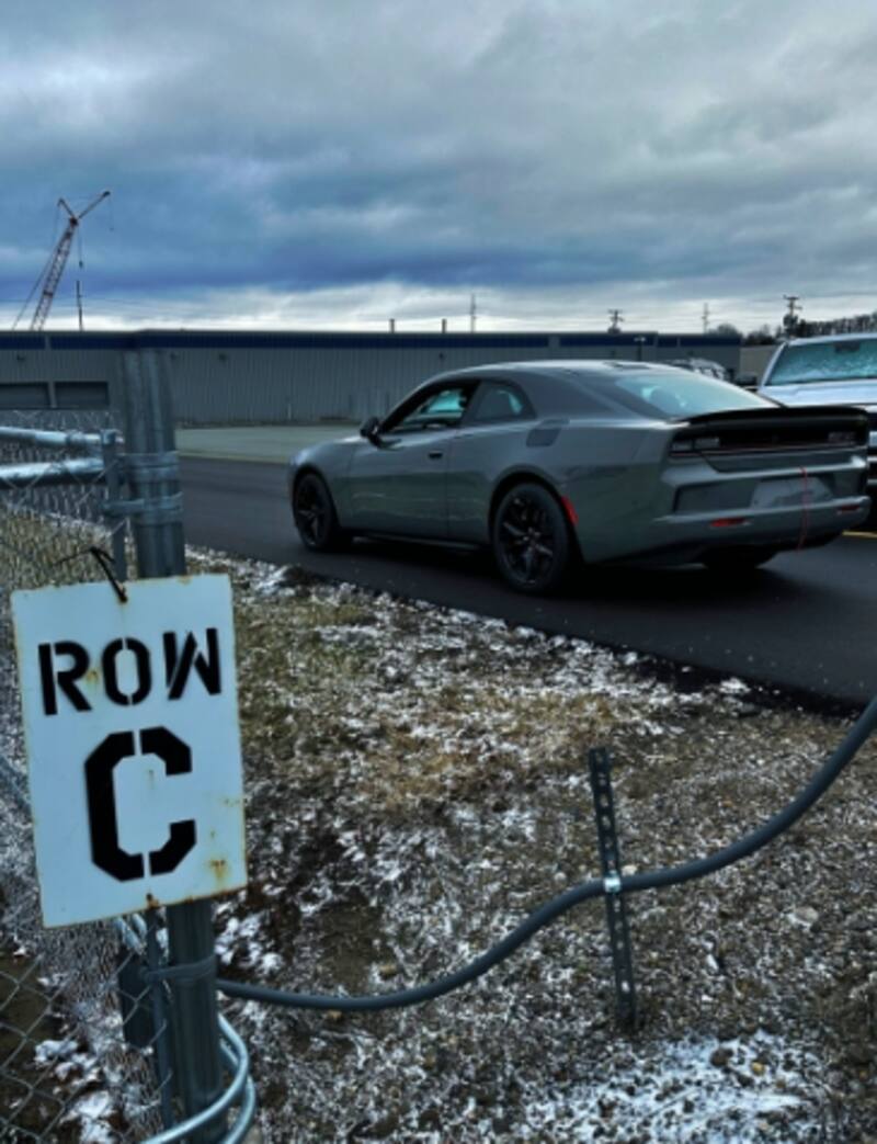 En particular, este ejemplar tiene un aspecto un tanto siniestro con esa pintura gris y las llantas en negro. Si nos fijamos bien en el parachoques trasero podemos ver la inscripción ‘Daytona’, lo que significa que estamos ante el nuevo Charger Daytona SRT eléctrico, la versión más potente de todas.