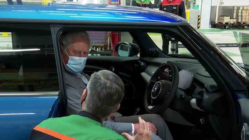 El heredero al trono condujo también el nuevo Mini 100% eléctrico.