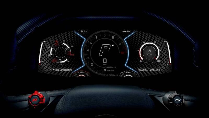 Así las cosas, cuando se active el modo Cittá, el LB744 se desplazará en modo totalmente eléctrico con una potencia limitada a 180 Hp. En tanto, que en la opción Strada, pensado para circular por autopista, la potencia máxima disponible ascenderá a 886 Hp, con el V12 activo de forma permanente y los motores eléctricos delanteros apoyando en caso de una aceleración fuerte.