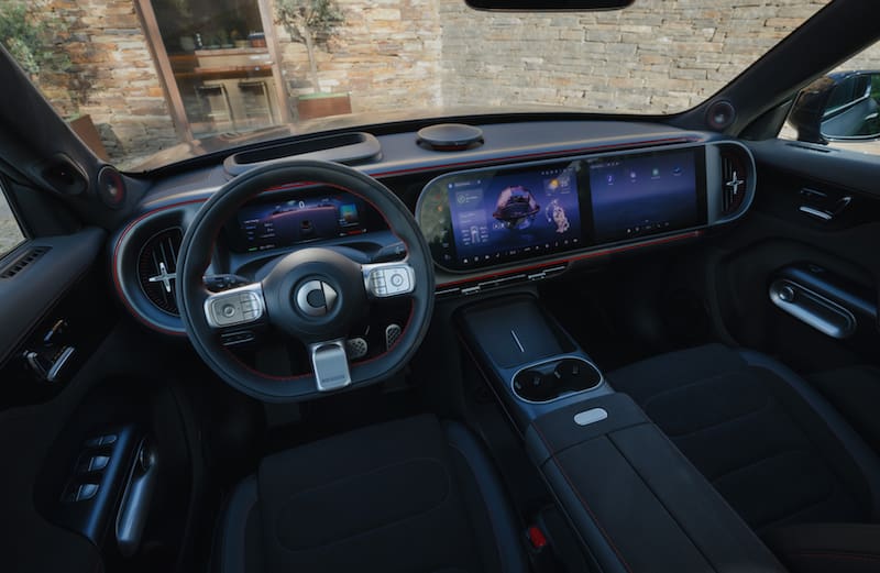Ahora bien, uno de los elementos más llamativos a bordo es la doble pantalla OLED de 13”, una para el conductor y otra para el acompañante. A ellas, se suma un cuadro de instrumentos de 10,25″ Full HD, complementada por un eficaz Head-Up Display con realidad aumentada.