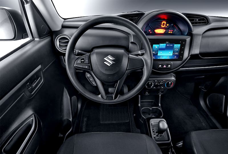 En términos de equipamiento, esta versión GLX AMT del nuevo Suzuki S-Presso añade asistente de salida en pendiente (HHC). Elemento que se suma al doble airbag frontal, frenos ABS, sensores de retroceso, anclajes Isofix, volante con control de audio y manos libres, espejos exteriores eléctricos y al nuevo sistema de infoentretenimiento que incluye radio de fábrica con pantalla de 7″ y conectividad para Apple CarPlay y Android Auto.