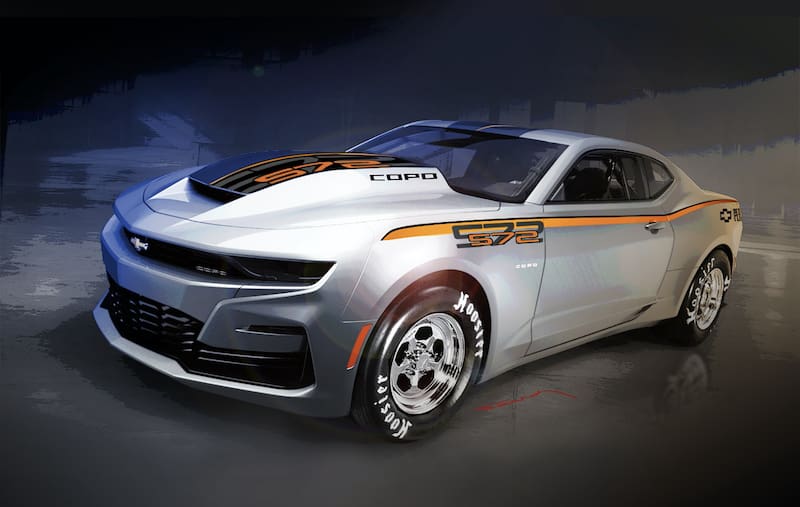 Pensado en demostraciones de velocidad, como el cuarto de milla, el Chevrolet COPO Camaro es vendido por Chevrolet Performance y no puede ser inscrito como un vehículo de calle. Viene de serie con un capó hecho en fibra de carbono y puede ordenarse con una caja para agregar peso al eje trasero (el que tracciona) y con un paracaídas para frenar a este monstruo de los arrancones.