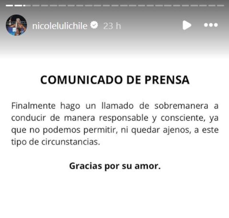 Hace unos días Nicole “Luli” Moreno volvió de lleno a la farándula criolla, tras protagonizar un accidente de tránsito en la comuna de Vitacura que la dejó con una lesión cervical.