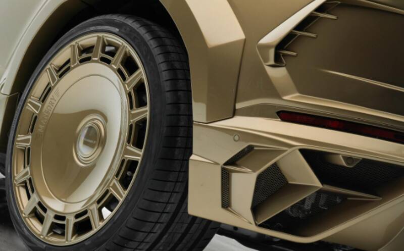Los especialistas de Mansory prepararon un Urus de potencia mejorada, llantas de 24 pulgadas y tono dorado como el sol.