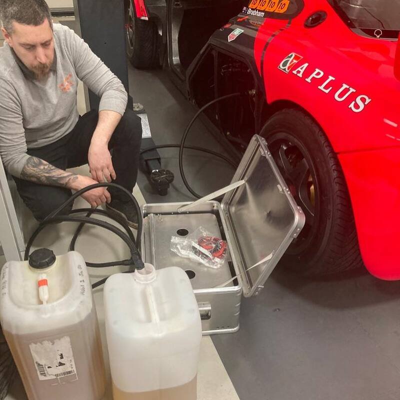 “No sé qué pasó por mi cabeza en ese preciso momento (en realidad, probablemente nada), pero estaba tan feliz y emocionado que agarré la primera manguera disponible y luego comencé a llenar el tanque”, comentó en su cuenta @fanchracing.