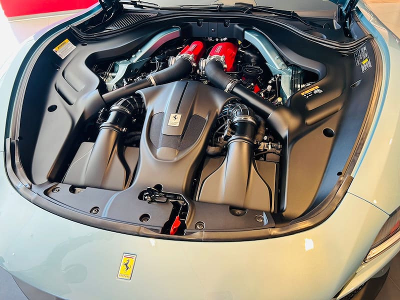 Los ingenieros de Maranello han perfeccionado aún más esta mecánica introduciendo una evolución de la bomba de aceite que mejora el rendimiento del motor durante los arranques en frío. Destacable es la tecnología Variable Boost Management, el software desarrollado por Ferrari que varía el par en función de la marcha utilizada para dar siempre el empuje adecuado con la vista puesta en el consumo.