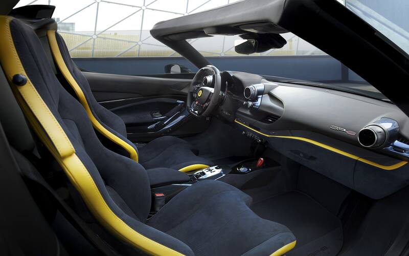 Puertas adentro Ferrari modificó por completo su habitáculo, con una consola central específica para albergar los mandos del F1 introducidos a partir del SF90 Stradale. Los asientos, tapizados en Alcantara Blu Navy grabada con láser y combinada con una lona de efecto degradado, y las alfombrillas de tejido de sarga específico con efecto iridiscente, completan el ambiente interior. Nada se sabe sobre el precio final de este exclusiva pieza.