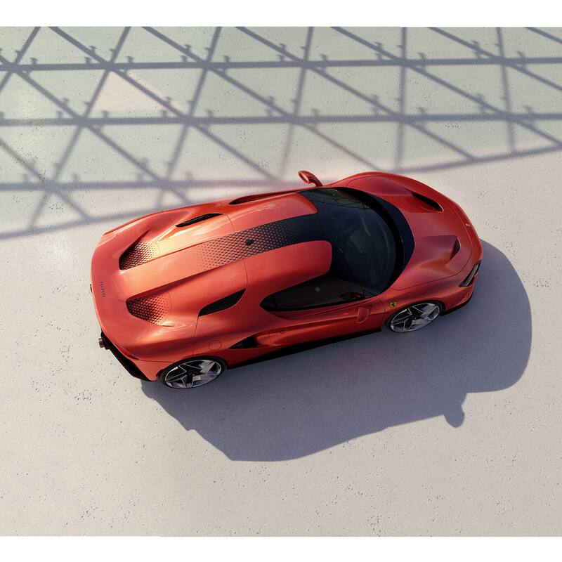 En cuanto a detalles técnicos, Ferrari indica que “se han realizado grandes cambios en las entradas de aire para los flujos de refrigeración del motor en el parachoques delantero y debajo del alerón trasero. Ambos llevan una profunda rejilla de diseño procedimental cuyas secciones adoptan un ángulo óptimo para maximizar la cantidad de aire que pasa”.