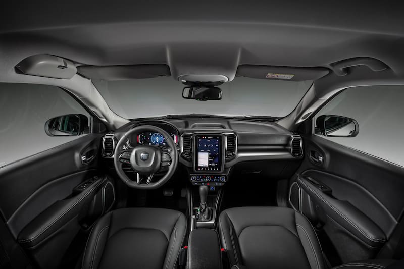 En la cabina, todas las variantes Toro traen de serie una pantalla digital compatible con Android y iPhone, que en los modelos de entrada es de 7″, y se reorganizó el diseño para hacerla más práctica para guardar objetos. En el caso de versiones intermedias el display es de 8.4″, en tanto que como opción en las camionetas Toro mejor equipadas se halla una pantalla de formato vertical de 10.1″. También se añaden cargador inalámbrico y los puertos USB tipo C.