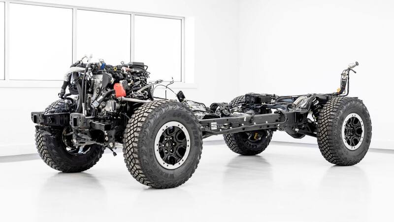 El nuevo Ford Bronco más grande está montado sobre un chasis de acero de alta resistencia de largueros, que también será el que utilice la próxima generación de la Ford Ranger (te lo habíamos contado la semana pasada). Destaca por la modularidad, ya que tanto el techo como las puertas son desmontables, con la gran ventaja de que los espejos retrovisores están anclados a la carrocería por delante del parabrisas, de forma que no se prescinde de la visión periférica cuando se quitan las puertas. En su variante corta, el Bronco mide 4,41 metros, en tanto que en su inédita carrocería cuatro puertas se extiende hasta los 4,81 metros.