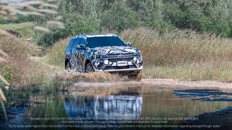Ahora Ford de Australia muestra imágenes oficiales del desarrollo del Everest, que está a meses de hacer su estreno pactado para el primer trimestre de 2022. Pese a que el modelo asoma con un camuflaje, se puede apreciar su clara inspiración en la Ranger gen-5 exhibida hace un par de semanas. “Creamos un patrón artístico que ofrece pistas de la aventura”, dijo Lee Imrie, diseñador de Ford Australia. “El camuflaje consiste en una serie de rectángulos inclinados en 45º que están inspirados en cimas de montañas”, agregó el ejecutivo, haciendo una clara alusión entre el nombre del modelo y los decorados exteriores antes del destape. Este antifaz del próximo Everest tiene colores gris meteorito, negro y blanco.