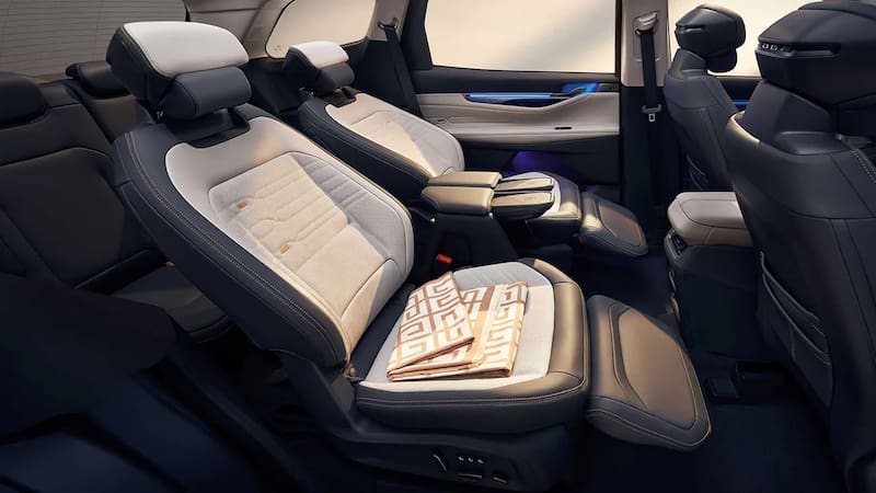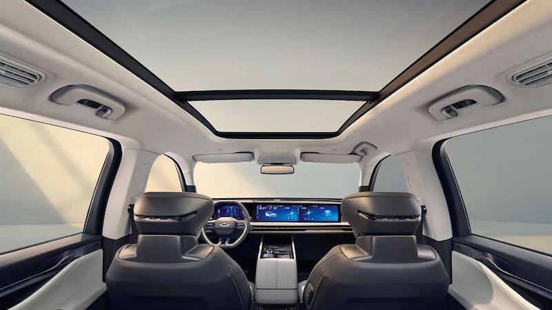 En su interior, contamos con una disposición en el habitáculo de 2+2+3 pero sin dudas lo más llamativo es su gigante pantalla de 27 pulgadas para el sistema de infoentretenimiento, en tanto, para el cuadro de instrumentos hay una pantalla de 12,3 pulgadas. Entre su equipamiento se encuentra techo corredizo panorámico, sistema de iluminación ambiental y asientos individuales reclinables en la segunda fila.