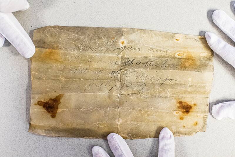 El equipo especializado fue el que tomó la tarea de y desenrolló el papel. Pero la verdad es que, si esperaban encontrar mensajes secretos de hace más de un siglo, lo cierto es que no fue tal. Es más, ni siquiera se ha podido descifrar por completo el texto y hasta ahora solo se lee “Dan Hogan y Leo Smith metieron este ….. de Chicago. Julio de 1913”. El espacio en blanco no se ha podido confirmar por ahora.