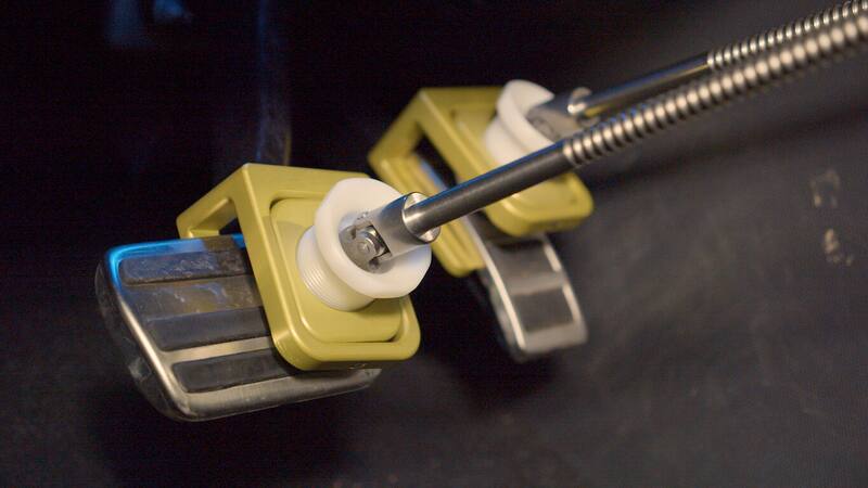 Las ‘piernas’ del conductor robotizado se extienden hasta el acelerador y los pedales de freno y embrague, con un brazo colocado para cambiar de marcha y el otro utilizado para arrancar y detener el motor.