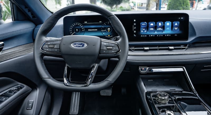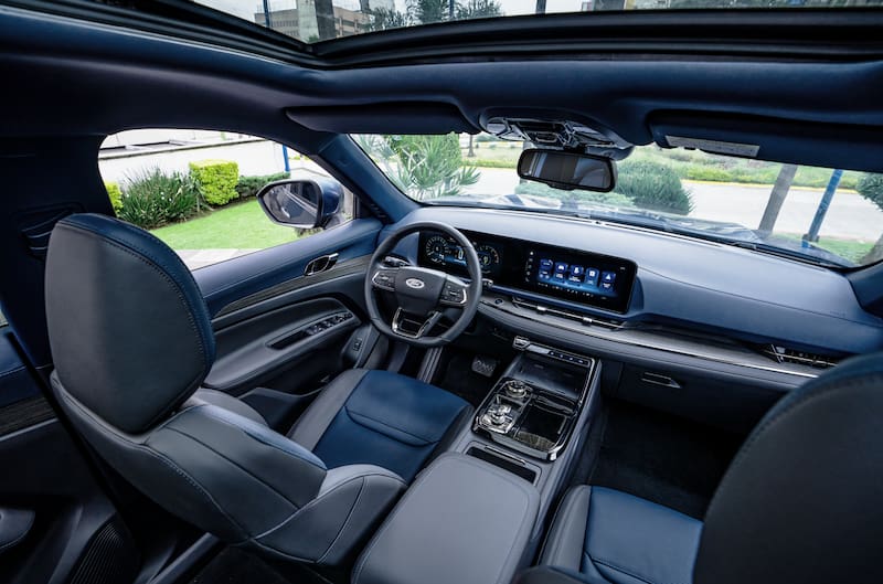 El tablero de instrumentos es de 7′' o 12′', dependiendo de la versión, mientras que la pantalla central de infoentretenimiento, puesta de forma horizontal, alcanza las 12 pulgadas, la cual viene con el sistema Sync Touch (diferente al Sync4 del resto de los modelos de Ford), y que la marca advierte fue mejorado para que sea más intuitivo y rápido. Obviamente, cuenta con conectividad inalámbrica para los sistemas de Apple CarPlay y Android Auto.