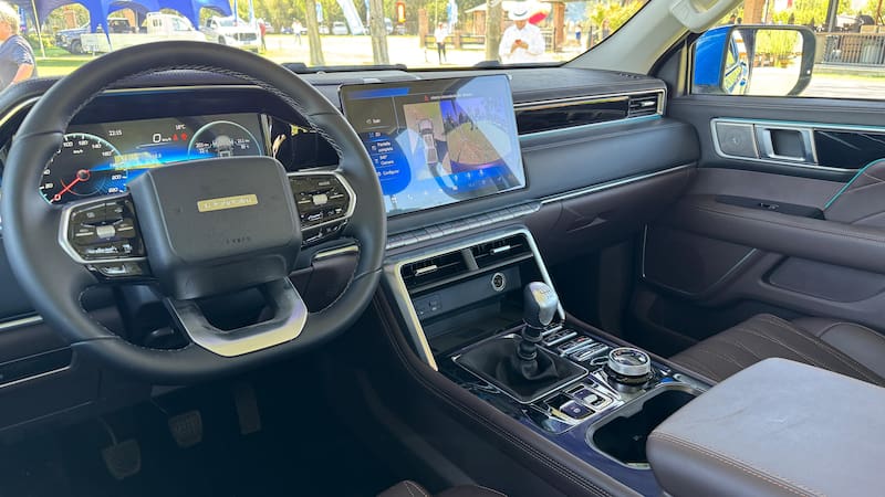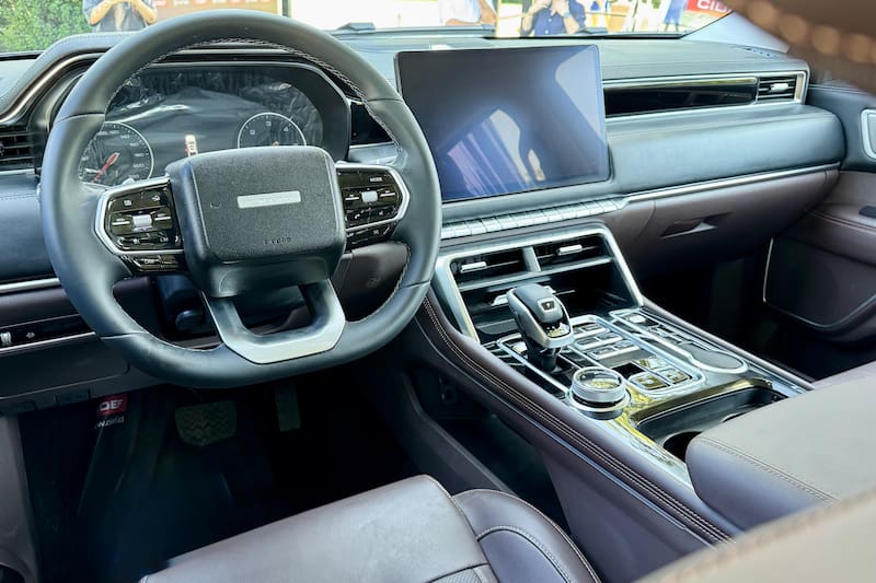 Los interiores de la V7 y V9 son prácticamente iguales y se diferencias por pequeños elementos de equipamiento. Destaca el diseño de consola horizontal con un clúster digital de 12,3′' y una pantalla central para su sistema de infoentretenimiento de 14,6′' compatibles con Apple Carplay y cargador inalámbrico de celulares. Bajo esta enorme pantalla se encuentran algunas teclas para operar las funciones de confort de forma directa.