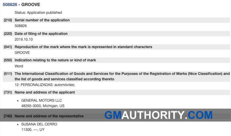 Como reza el video, el modelo podría llamarse Groove. Esta idea cobra sentido, puesto que GM inscribió la denominación Groove el 10 de octubre de 2019 en la oficina de registros de Uruguay, según informó el portal GM Authority.