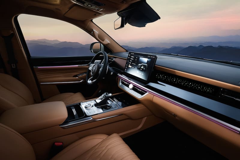 En el interior, el Tank 700 Hi4-T ofrece un habitáculo cómodo y bien terminado, donde se incluye un panel de instrumentos LCD, una pantalla flotante en la consola central con casi 15 pulgadas de diagonal y un sistema de proyección en el parabrisas (HUD). Los asientos fueron diseñados para ser más anchos de lo normal, además de reducir su grosor gracias a las diferentes densidades de su relleno. Obviamente en ellos no falta la ventilación, calefacción, masaje y reposacabezas con bordes ajustables brindan la máxima comodidad para todos los pasajeros. Además, un sistema de audio Harman Kardon de 16 parlantes mejora la experiencia de conducción con una fidelidad de auto que promete posicionarse como lo mejor de su segmento.