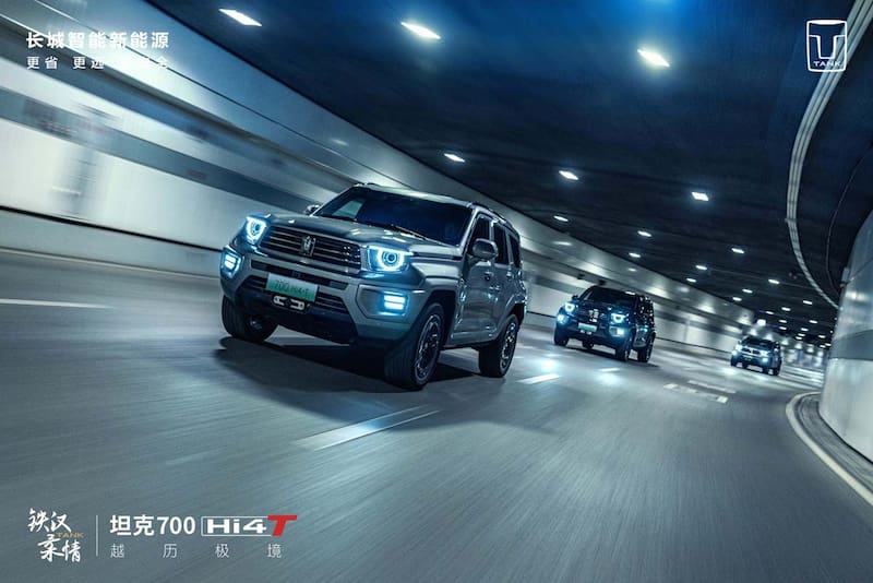 El Tank 700 Hi4-T utiliza un motor V6 biturbo de 3.0 litros, el cual va emparejado con un motor eléctrico que forma un sistema híbrido enchufable. Este tren motriz ofrece una potencia combinada de 385kW (517 hp) y 800 Nm de torque. El modelo está equipado con una transmisión automática de 9 velocidades y un sistema multimodo todoterreno, con varios modos de conducción para diversas condiciones del camino, siendo capaz de adaptar tanto la tracción como la eficiencia en el uso de la energía en cada trayecto.