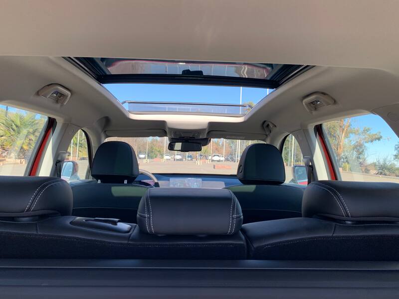 En las plazas traseras -que son de cuero, al igual que las delanteras- el espacio es muy generoso, gracias en gran medida a un piso plano que permite también confort al que llegue último y toque el asiento del medio. Hay dos salidas de aire traseras y doble cargador USB. La mencionada sensación de amplitud se hace más latente con un techo panorámico que cubre las dos filas de asientos.