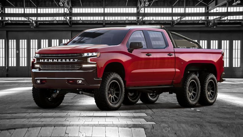 La empresa de tuning con sede en Sealy, Texas y fundada en 1991, sometió a una cirugía mayor a la Chevy Silverado Trail Boss, partiendo por un tercer eje de tracción. La pick up suma un nuevo sistema de suspensión trasero, una espacio para carga notoriamente más largo, llantas Hennessey de 20 pulgadas, luces LED y parachoques delantero y trasero personalizados.