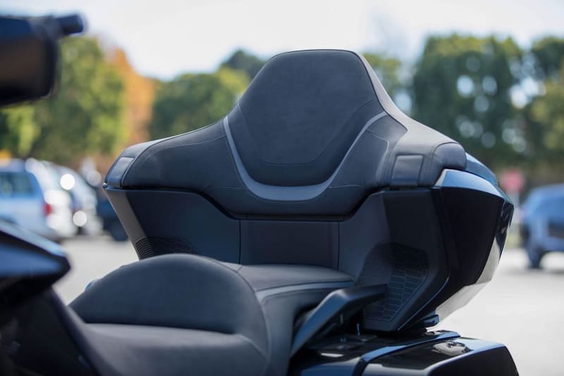 La nueva Gold Wing Tour cuenta con el top box y cómodo asiento trasero que entrega mejor confort para el acompañante, el que también dispone de apoyabrazos más grandes. Otro atractivo cambio es el aumento de 11 litros adicionales para el topbox aumentando la capacidad total hasta 121 litros.