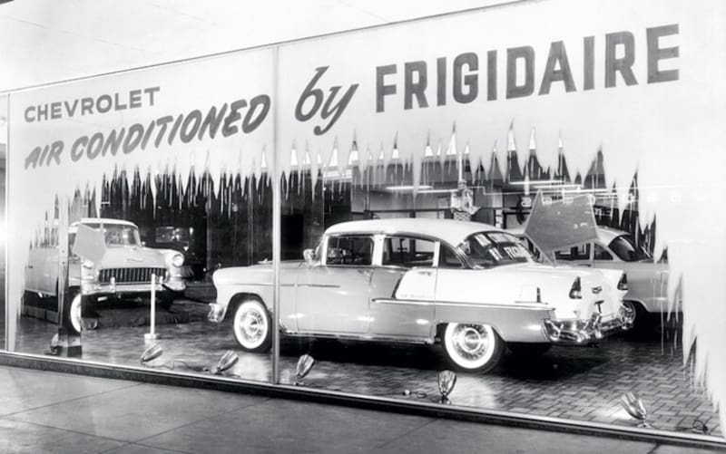 En la década del 50 la sociedad entre los gigantes General Motors y Frigidaire permitió que esta última suministrara de equipos de aire acondicionado a todos los modelos de autos y camionetas de Cadillac y Chevrolet.