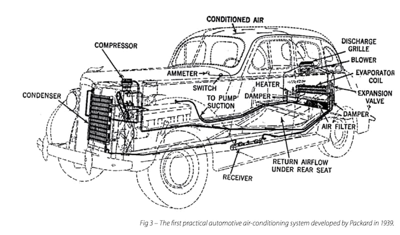 El primer automóvil de calle en implementar el aire acondicionado fue el Custom Super Eight, de la extinta marca norteamericana de lujo Packard. El Custom Super Eight, que debutó en 1940, fue un auto de lujo impulsado por un motor 5.8 litros de la también desaparecida configuración ocho cilindros en línea.