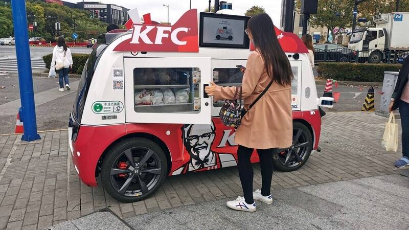 Los pequeños vehículos en cuestión, cuyas imágenes fueron publicadas en Twitter, contaban con pantallas táctiles en la que las personas podían elegir su pedido y, después, pagar mediante un código QR usando una aplicación de pago. Una vez hecha la transacción, se abría una puerta para retirar su pedido de pollo crujiente.