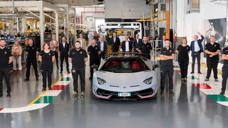Tal como hizo en julio con el SUV Urus, Lamborghini celebra ahora las 10 mil unidades producidas del superdeportivo Lamborghini Aventador. La compañía italiana lo logra en nueve años desde que comenzó a producir el modelo con motor V12 en su sede central de Sant’Agata Bololognese. El vehículo con el chasis número 10.000 es un Aventador SVJ Roadster en color Grigio Acheso (gris) con Rosso Mimir (rojo) y un interior personalizado Rosso Alala y negro.