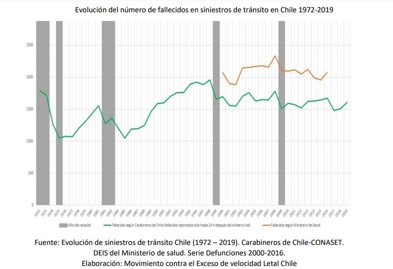 Según el profesor Luis Rizzi, de la Universidad Católica, quien declaró el 31 de julio de 2018 en la Comisión de Obras Públicas, Transportes y Telecomunicaciones de la Cámara de Diputadas y Diputados, “el número de víctimas fatales muestra una tendencia oscilante en el tiempo, pero estable. Las bajas pronunciadas de víctimas coinciden con los años de recesión económica. Este pareciera ser el principal factor que impulsa el ciclo descendente de las fatalidades, poniendo de manifiesto la incapacidad de las políticas públicas en la materia por más de cuarenta años”.