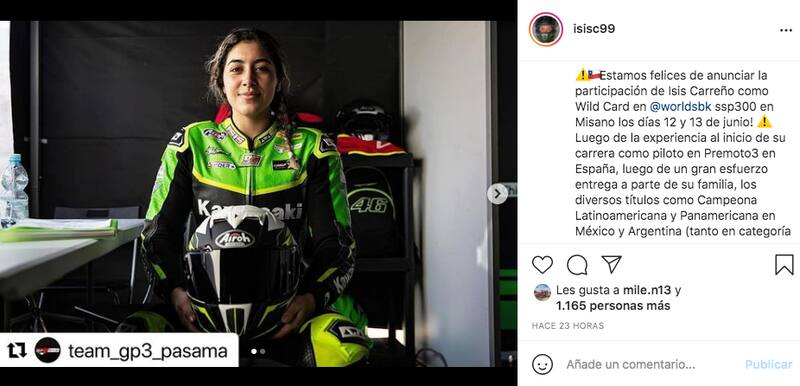 “Luego de la experiencia al inicio de su carrera como piloto en Premoto3 en España, luego de un gran esfuerzo entrega a parte de su familia, los diversos títulos como Campeona Latinoamericana y Panamericana en México y Argentina (tanto en categoría mixta y femenina ) y el brillante debut en la segunda edición de @womenscup_official, el equipo dirigido por @tonydangelo.11 logró tener esta oportunidad y este evento será aún más importante ya que Isis es la primera piloto latinoamericana en participar en @worldsbk!”, fue el emotivo mensaje en la cuenta oficial de la campeona nacional.