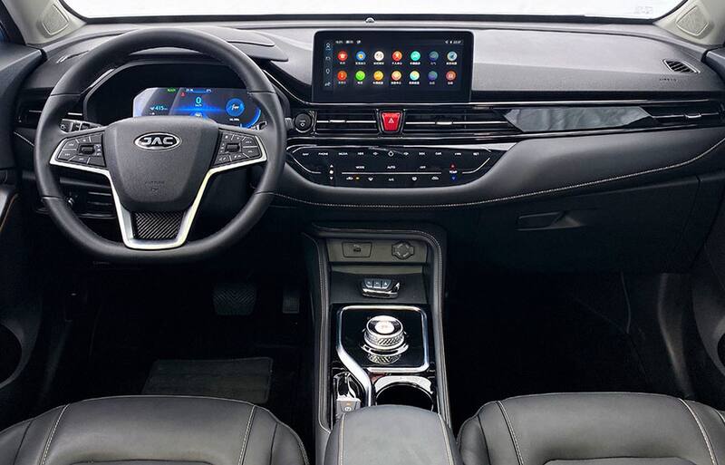 En el interior destaca un tablero digital de 7′' y en la consola central una pantalla flotante de 10.25′'. Dispone de conectividad a través de Bluetooth o la aplicación JAC Connect.