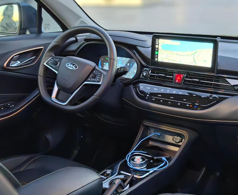 Fuera de este inconveniente que limita el uso, el resto de aspectos del e-JS4 parecen muy convincentes, equipando 6 airbags, frenos de disco en las 4 ruedas con ABS y EBD, control de estabilidad ESP, llantas aro 18 con monitor de presión de neumáticos, cámara 360, luces full LED, encendido por botón, vidrios eléctricos one touch en todas las puertas, espejos eléctricos, sensor de lluvia, tapiz de ecocuero, calefacción de asientos delanteros, climatizador, tablero digital de 10.25 pulgadas y pantalla central de 10.25 pulgadas con Android Auto y Apple Carplay, además de llanta de repuesto de tamaño completo.