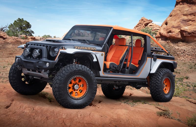 También se mostró al Rubicon 20th Anniversary Concept, una idea que, como su nombre indica, rinde culto a las dos décadas de la denominación Rubicon. Siguió el Bob Concept, un modelo de voladizos cortos que mejora ángulos de ataque y salida. ¿Cuál es su gracia? En estricto rigor es una derivación de la pick-up Gladiator (incluido su motor diésel 3.0 litros), con aspecto, claro, de Jeep Wrangler.