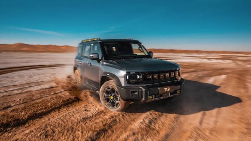 Estéticamente, el nuevo Jetour T2 exhibe un diseño cuadrado, de líneas rectas y perfil robusto. Adelante sobresale por un prominente parachoques, así como por una parrilla de color negro que dispone del anagrama de la marca retroiluminado. A ello suma unos focos full matrix led y el equipamiento de un gancho de remolque.