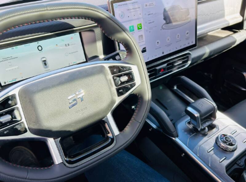 En términos de equipamiento, dispone de una gran pantalla táctil de 15,6″, que incluye el sistema de infoentretenimiento y que es compatible con Apple CarPlay y Android Auto. A través de ella, también se visualizan las imágenes que proporciona una cámara panorámica de 360 grados.