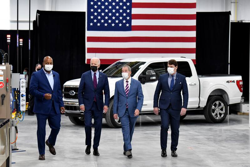 Biden aprovechó para visitar las instalaciones donde se producirá la nueva camioneta eléctrica F-150 Lightning y tras manejar la pick-up eléctrica que está próxima a estrenarse, señaló que “marcaremos un nuevo ritmo para autos eléctricos. La pregunta es si lideraremos o nos quedaremos atrás en la carrera hacia el futuro. O si construiremos estos vehículos y las baterías que van en ellos aquí en Estados Unidos, o confiaremos en otros países”.