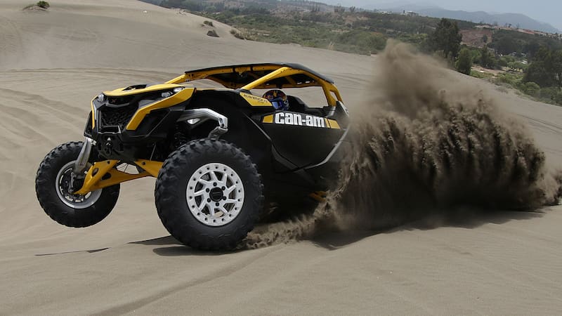 El Can-Am Maverick R es un buggy de uso particular, pero con el alma de un deportivo. Se mueve por un motor T Rotax de 999 cc turboalimentado de 3 cilindros que genera 240 caballos de fuerza. Es el más poderoso de su tipo en esta categoría.
