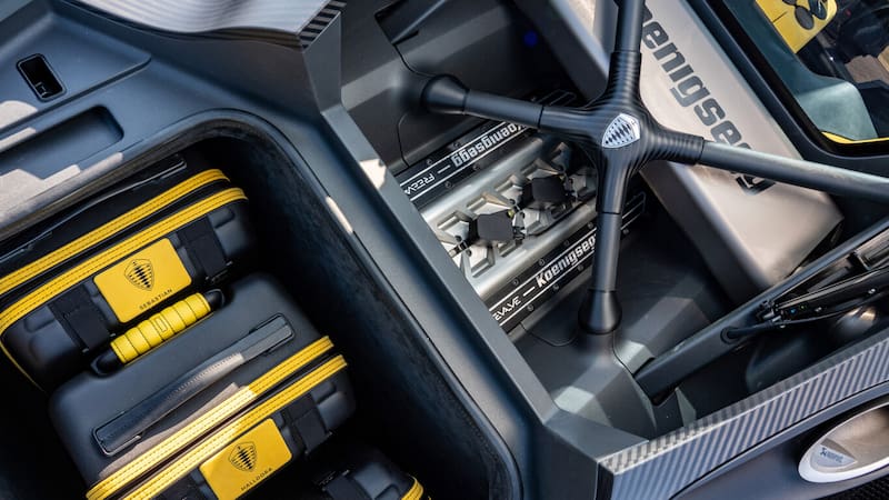 Asimismo, el Gemera V8 ofrece la misma capacidad de carga que el de tres cilindros: 200 litros, según Koenigsegg suficiente para llevar cuatro maletas de mano, tres en el maletero posterior y una cuarta en el frontal.