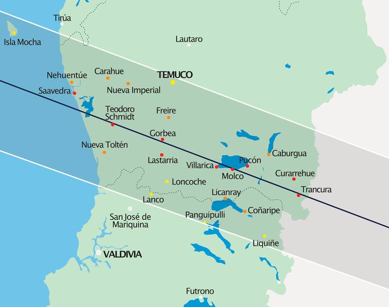 Por segundo año consecutivo nuestro país podrá apreciar un eclipse total de sol, el que se podrá ver en todo su esplendor en la Región de La Araucanía y parte de Los Ríos y Biobío. La Fundación Chilena de Astronomía elaboró un estudio con los mejores lugares donde verlo.