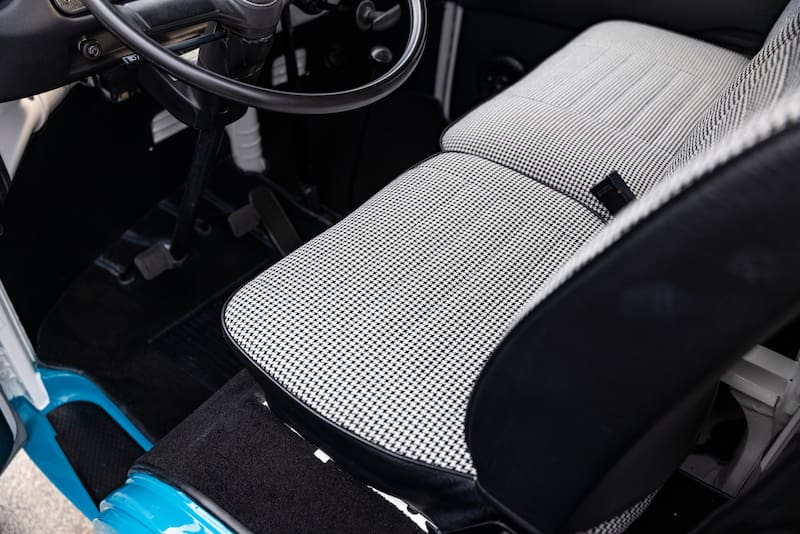 La restauración se concibió como un trabajo artesanal que respetó fielmente la esencia del modelo original, desde su esquema bicolor blanco y azul hasta la configuración clásica de su cabina.