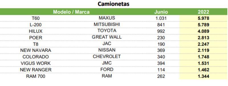 Este margen tan estrecho donde la Maxus T60 supera por 189 unidades a la Mitsubishi L200 se debe a que el modelo de origen chino en el mes de junio logró comercializar 1.031 unidades, frente a las 841 unidades que entregó la de origen tailandés.