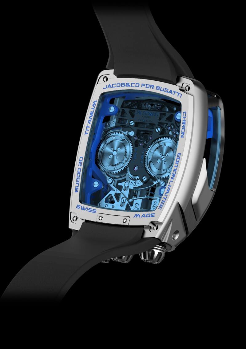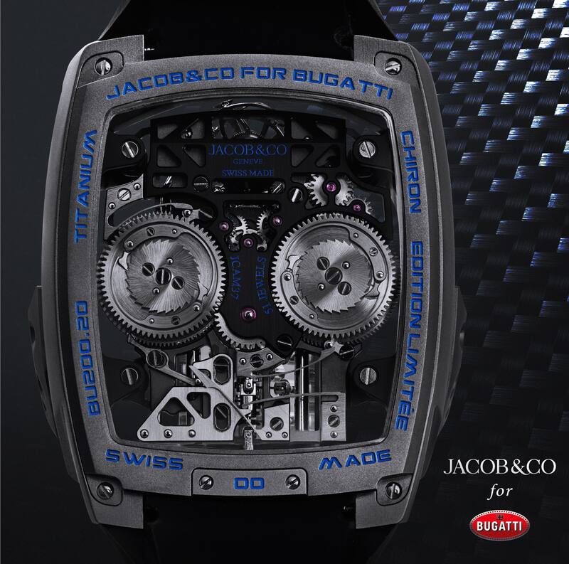Este increíble modelo con tourbillon volante fue creado desde cero para celebrar la alianza entre Bugatti y Jacob & Co. En él destaca principalmente el cigüeñal, que es una de las piezas más pequeñas y complicadas jamás creadas en el mundo de la relojería.